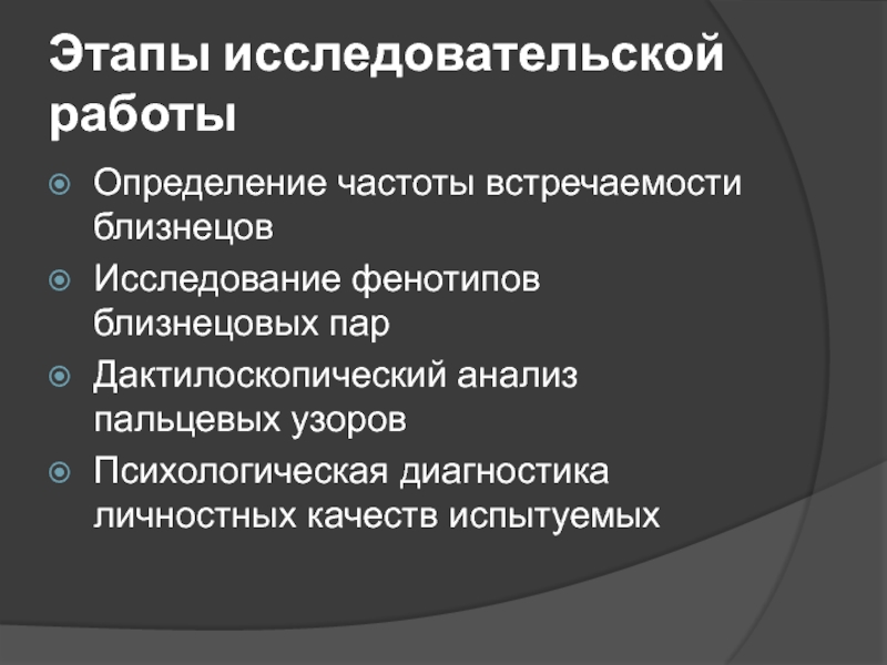 Слайд 30Психологические исследования личностных особенностей близнецов