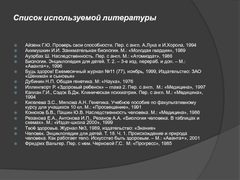 Конюхов Б.В., Пашин Ю.В. Наследственность человека. М.: «Медицина», 1986