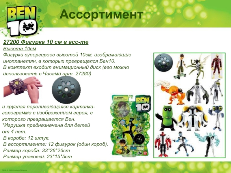 и круглая переливающаяся картинка-голограмма с изображением героя, в которого превращается Бен.