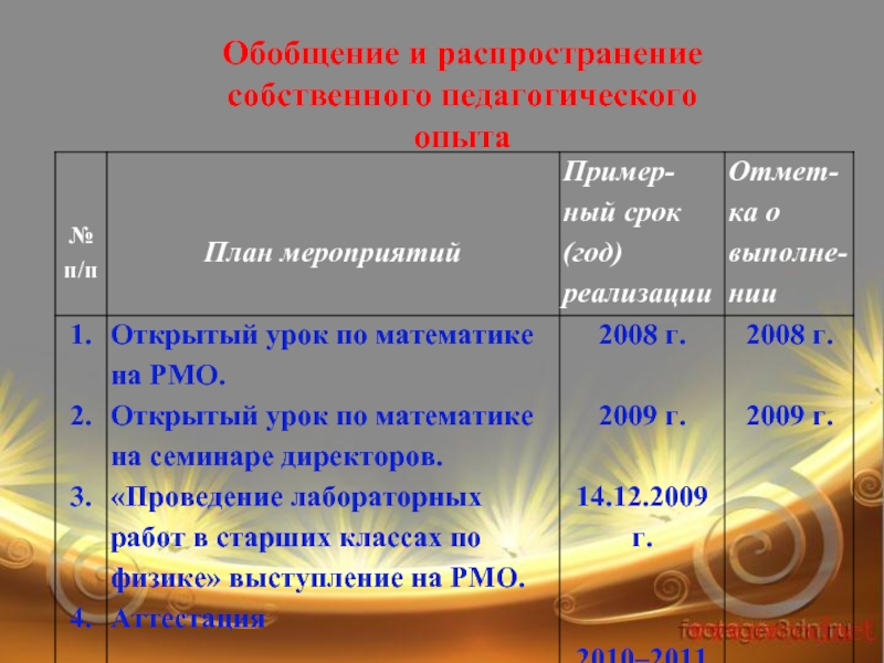 Слайд 11Обобщение и распространение собственного педагогического опыта