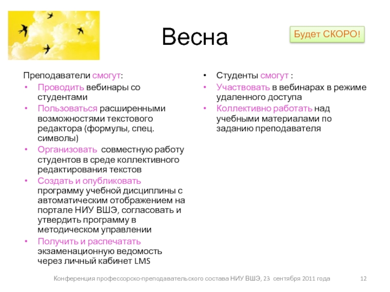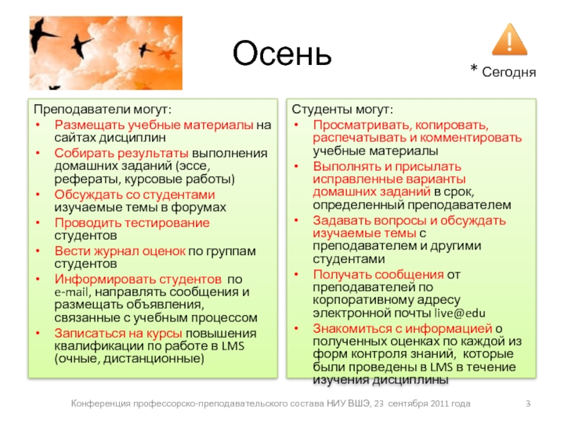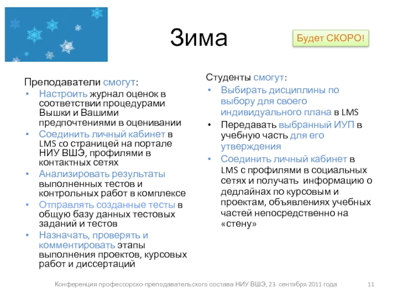 Конференция профессорско-преподавательского состава НИУ ВШЭ, 23 сентября 2011 года