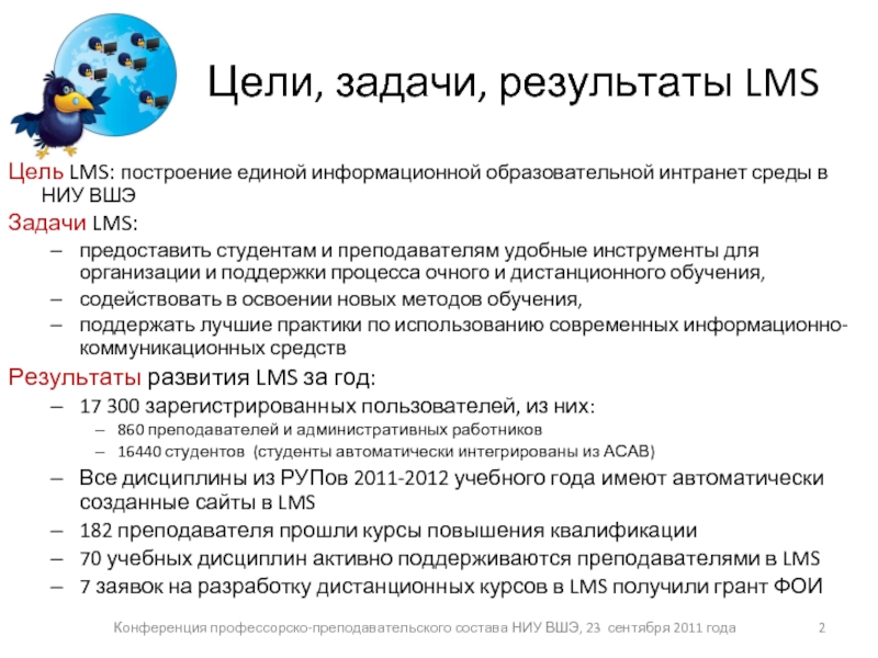 Цель LMS: построение единой информационной образовательной интранет среды в НИУ ВШЭ