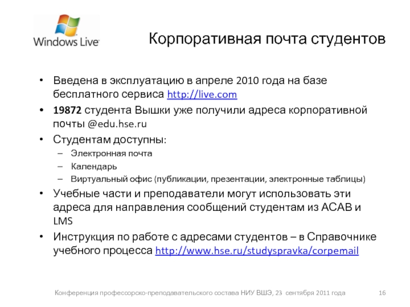 Получать сообщения от преподавателей по корпоративному адресу электронной почты live@edu