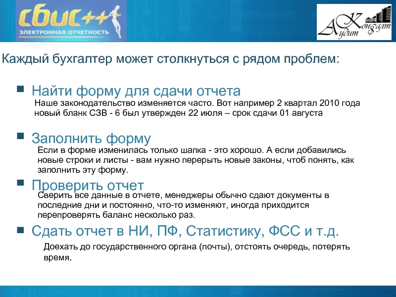 Сдать отчет в НИ, ПФ, Статистику, ФСС и т.д.