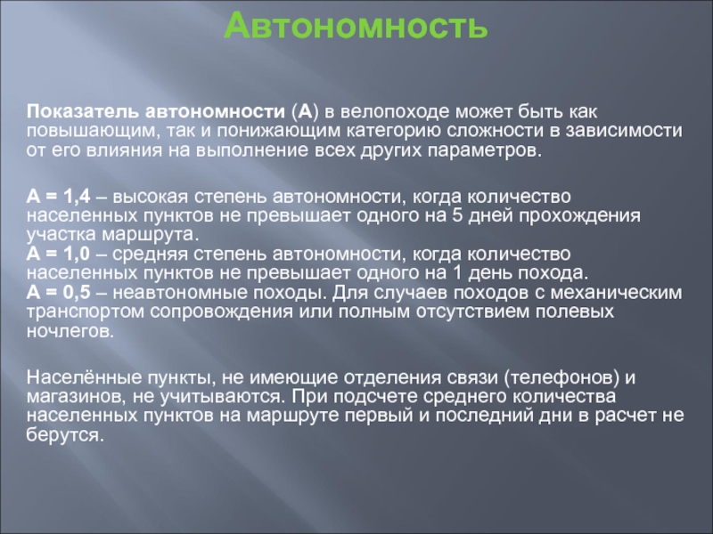Показатель автономности (А) в велопоходе может быть как повышающим, так