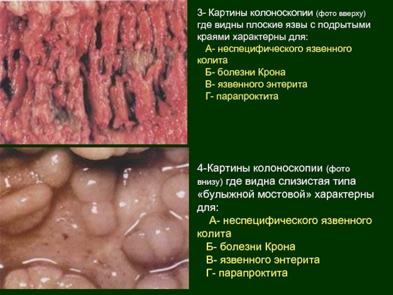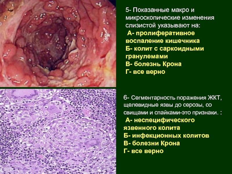 6- Сегментарность поражения ЖКТ, щелевидные язвы до серозы, со свищами и спайками-это признаки. :