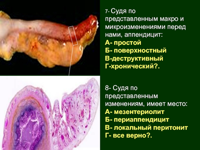 7- Судя по представленным макро и микроизменениями перед нами, аппендицит: