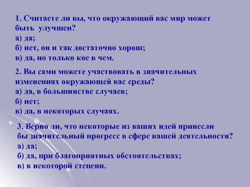 2. Вы сами можете участвовать в значительных изменениях окружающей вас среды?