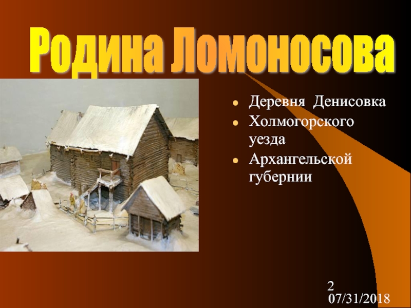 М.В.Ломоносов родился в д. Мишанинской близ Холмогор, что в 75км от Архангельска.
