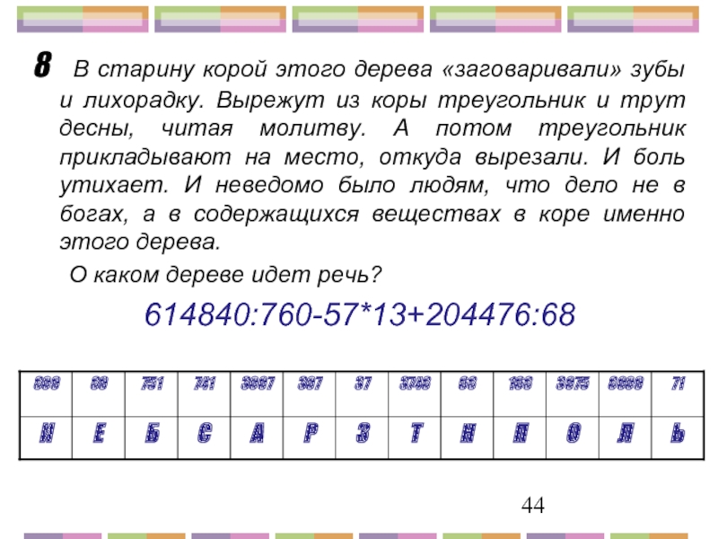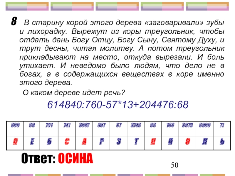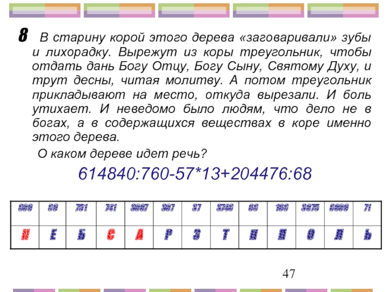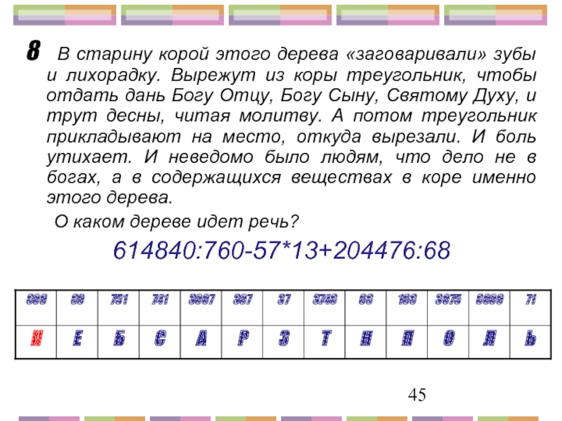 Слайд 25 4 Самостоятельно выполните вычисления. Зачеркните в таблице буквы, соответствующие найденным ответам. Оставшиеся