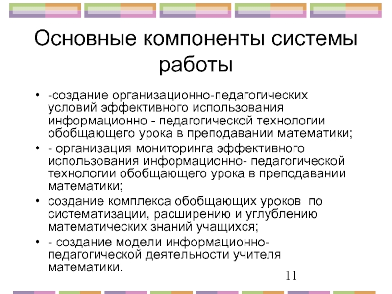 -создание организационно-педагогических условий эффективного использования информационно - педагогической