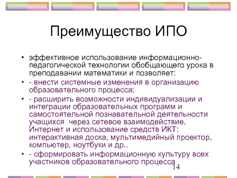 эффективное использование информационно-педагогической технологии обобщающего урока в преподавании математики и