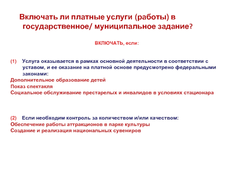 ограничения на включение в государственное/муниципальное задание платных услуг