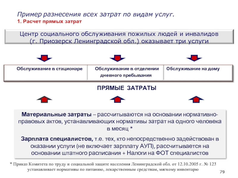Слайд 79Пример разнесения всех затрат по видам услуг.