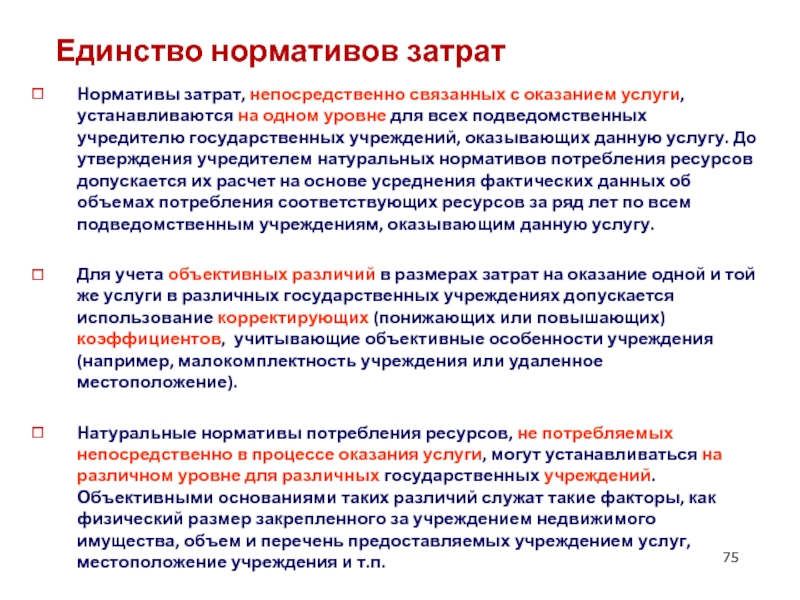 Слайд 75Единство нормативов затрат