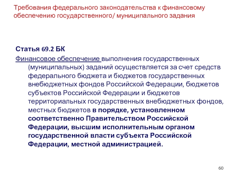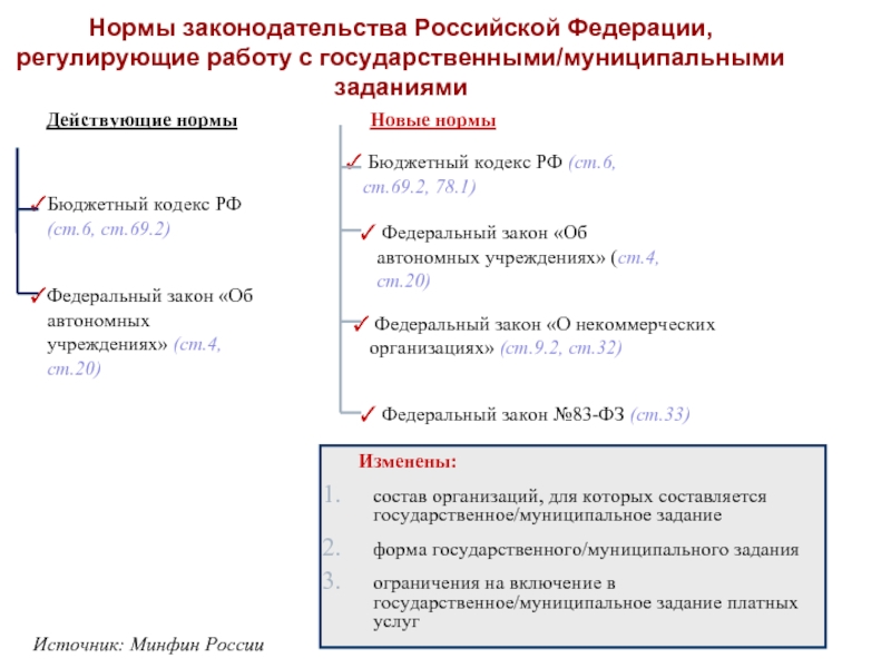 Слайд 3Нормы законодательства Российской Федерации, регулирующие работу с государственными/муниципальными заданиями
