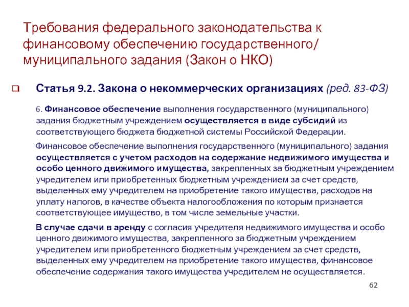 Федеральный закон «О некоммерческих организациях» (ст.9.2, ст.32)