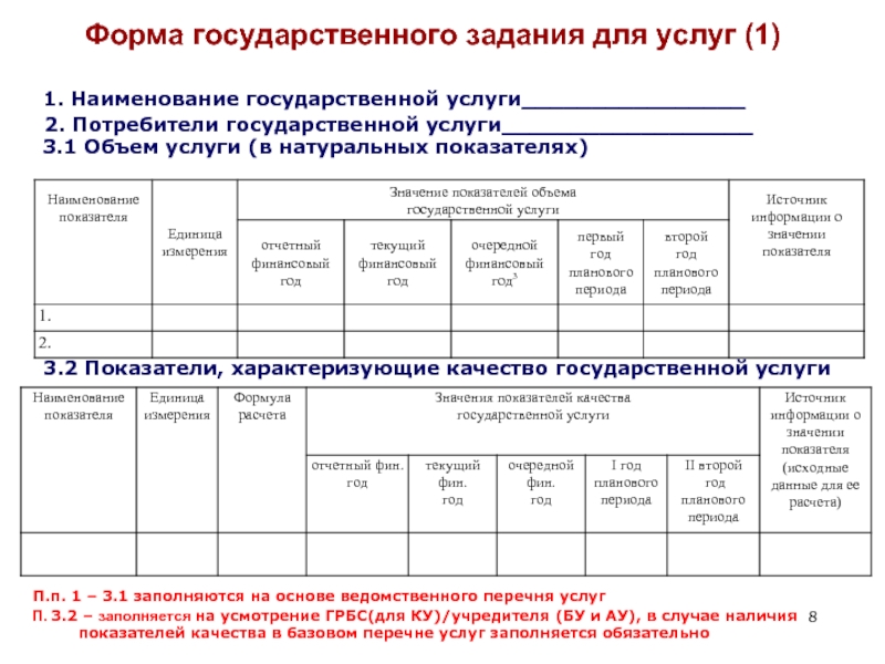 Слайд 8Форма государственного задания для услуг (1)