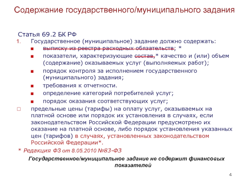 Слайд 4Содержание государственного/муниципального задания