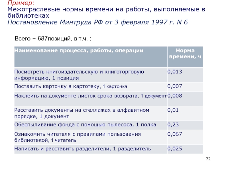 Межотраслевые нормы времени на работы, выполняемые в библиотеках