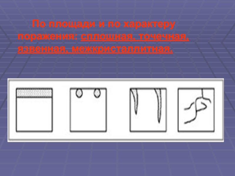 Слайд 8 По площади и по характеру поражения: сплошная,