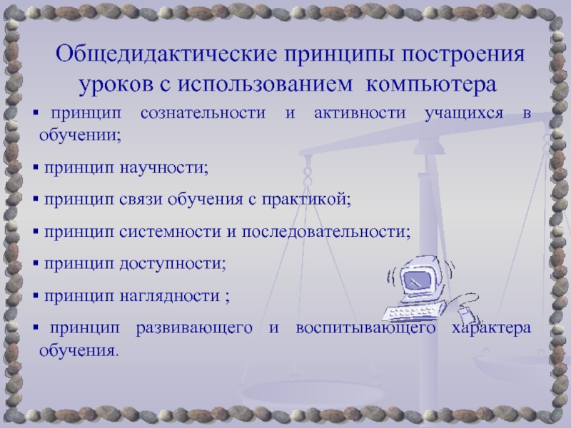 Слайд 7 Общедидактические принципы построения уроков с использованием компьютера