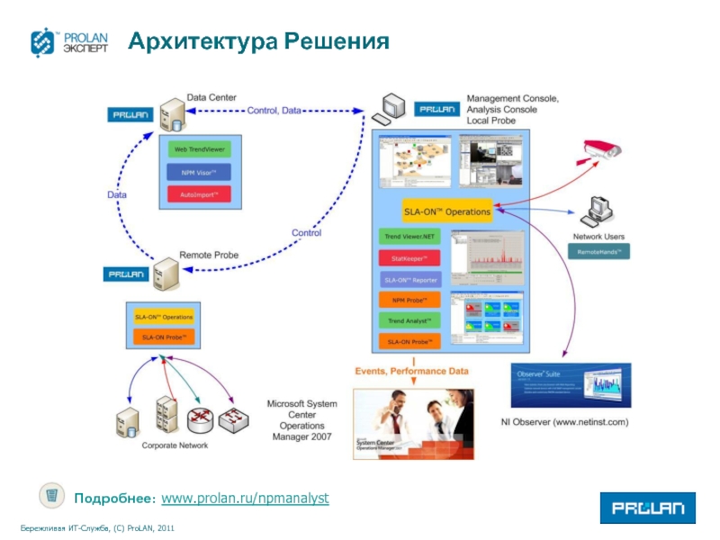 Прозрачная интеграция с MS SCOM 2007, продуктами Service Desk (HP Service Manager, BMC Remedy, …) и другими.