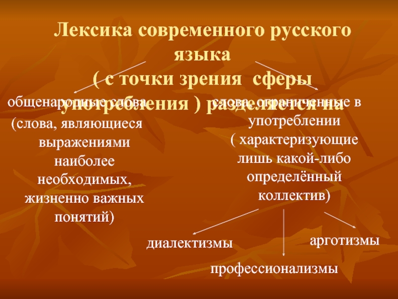 слова, ограниченные в употреблении ( характеризующие лишь какой-либо определённый коллектив)