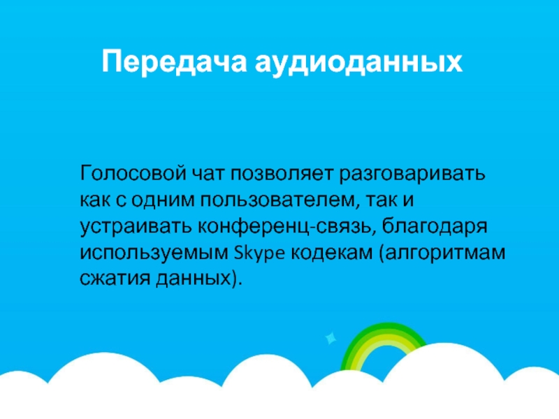 устраивать конференц-связь, благодаря используемым Skype кодекам (алгоритмам сжатия данных).