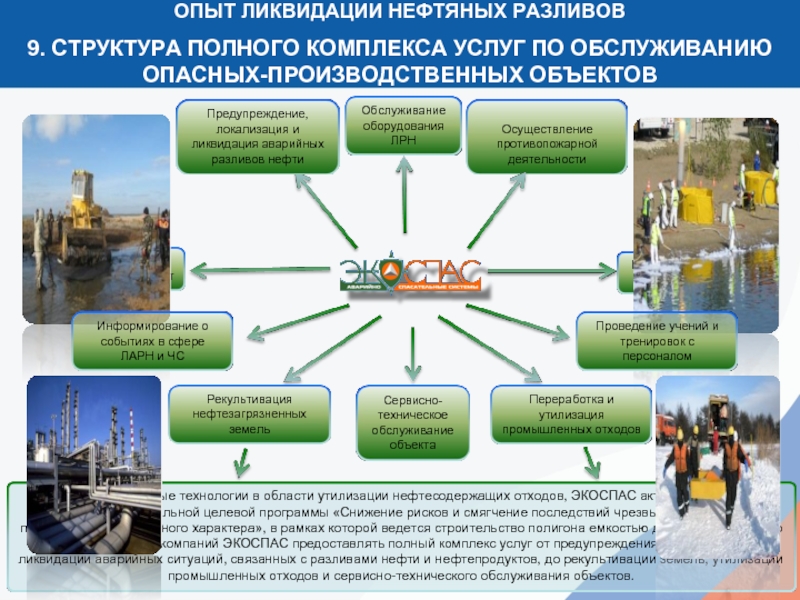 - организация и участие в мероприятиях по рекультивации земель загрязненных нефтепродуктами, проведение инженерно-экологических исследований, инженерных изысканий, разработка проектов.