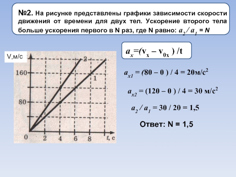 ax1 = (80 – 0 ) / 4 = 20м/с2