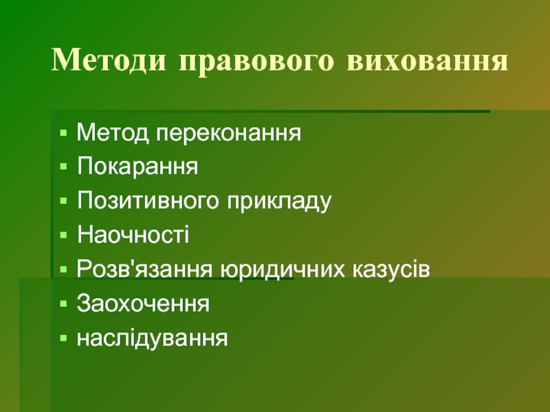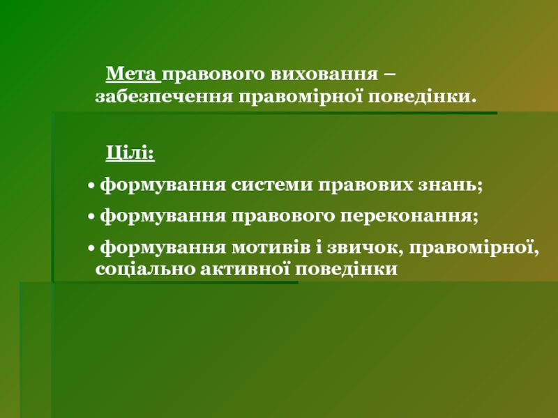 Правова вихованість – внутрішній духовно-правовий стан, у якому перебуває учень в момент прийняття рішення, як поводити себе за тих чи інших обставин.