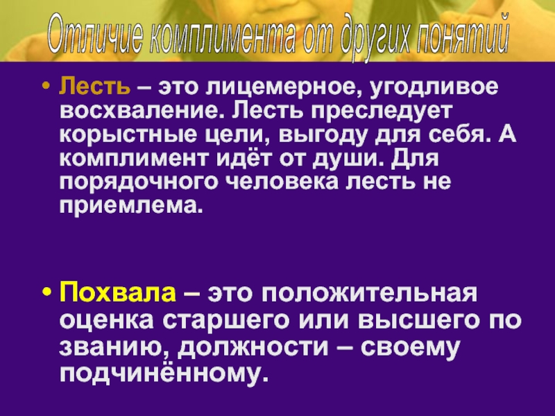 Отличие комплимента от других понятий