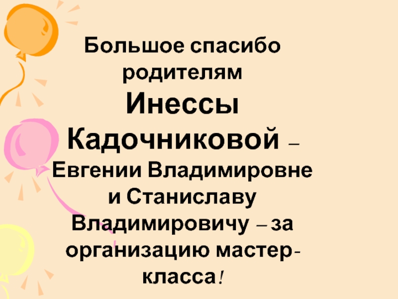 Инессы Кадочниковой – Евгении Владимировне и Станиславу Владимировичу