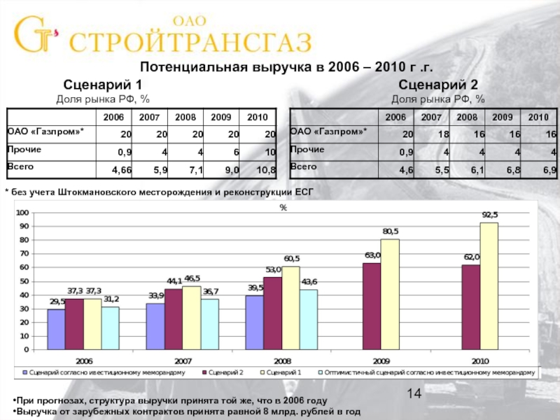 * без учета Штокмановского месторождения и реконструкции ЕСГ