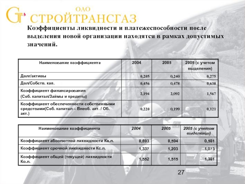 Активы являлись убыточными и генерировали отрицательный денежный поток. В 2005 году убыток от данных активов отражаемый в консолидированной отчетности составит около 350 млн. рублей. После выделения ОАО «Стройтрансгаз» полностью прекратит какое либо финансирование данных предприятий. Таким образом, вывод непрофильных активов положительно отразится на таких показателях как Долг/EBIT, EBIT/процентные расходы, EBITDA/процентные расходы рассчитанных для группы компаний ОАО «Стройтрансгаз»