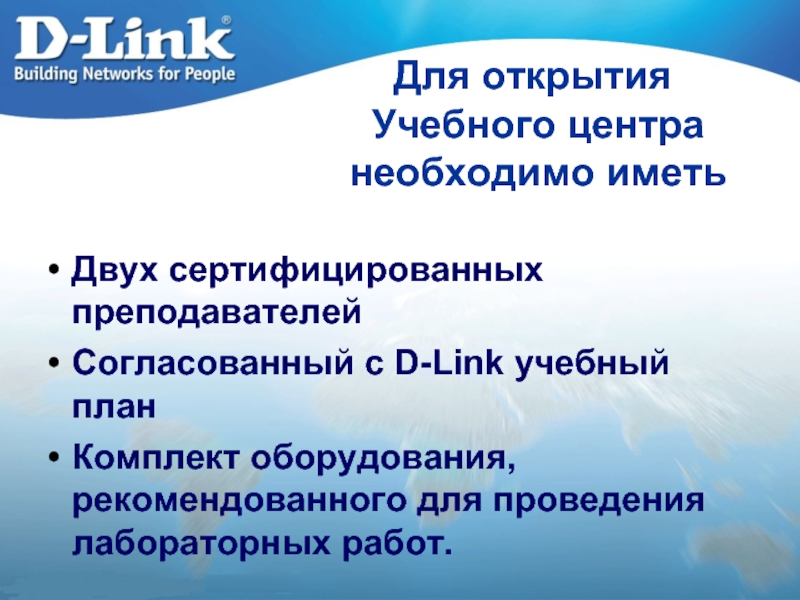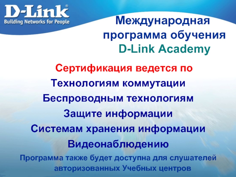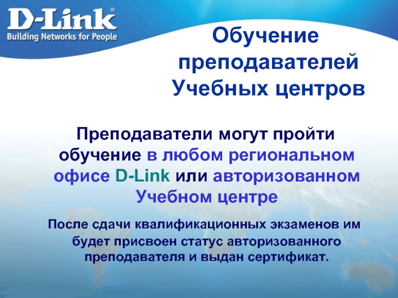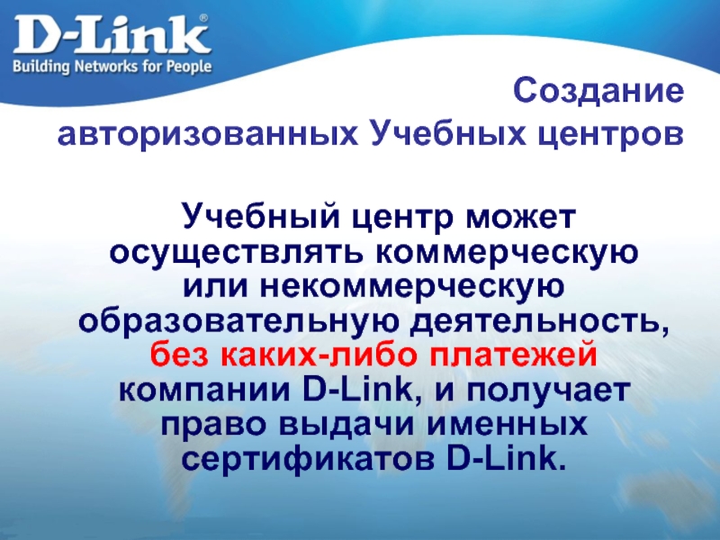 деятельность, без каких-либо платежей компании D-Link, и получает право выдачи именных сертификатов D-Link.