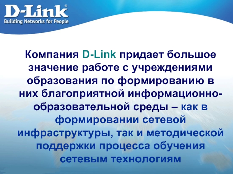 Компания D-Link придает большое значение работе с учреждениями образования по формированию