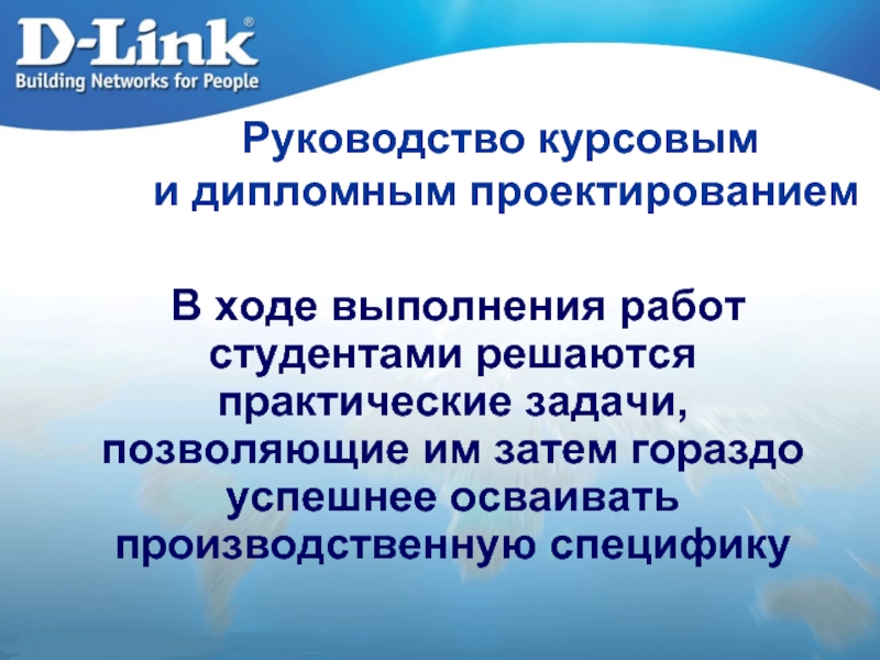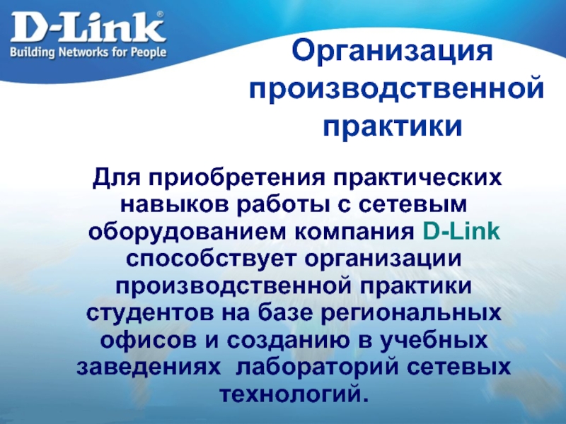 D-Link способствует организации производственной практики студентов на базе региональных офисов и созданию в учебных заведениях лабораторий сетевых технологий.