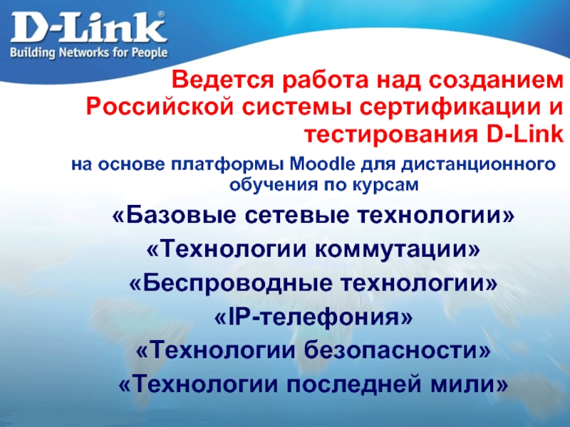 Слайд 22	Ведется работа над созданием Российской системы сертификации и тестирования D-Link