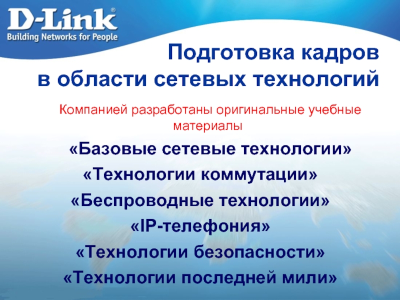 компания D-Link предоставит оригинальные учебные материалы и будет