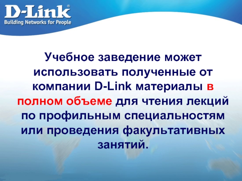 Слайд 12Учебное заведение может использовать полученные от компании D-Link материалы в полном