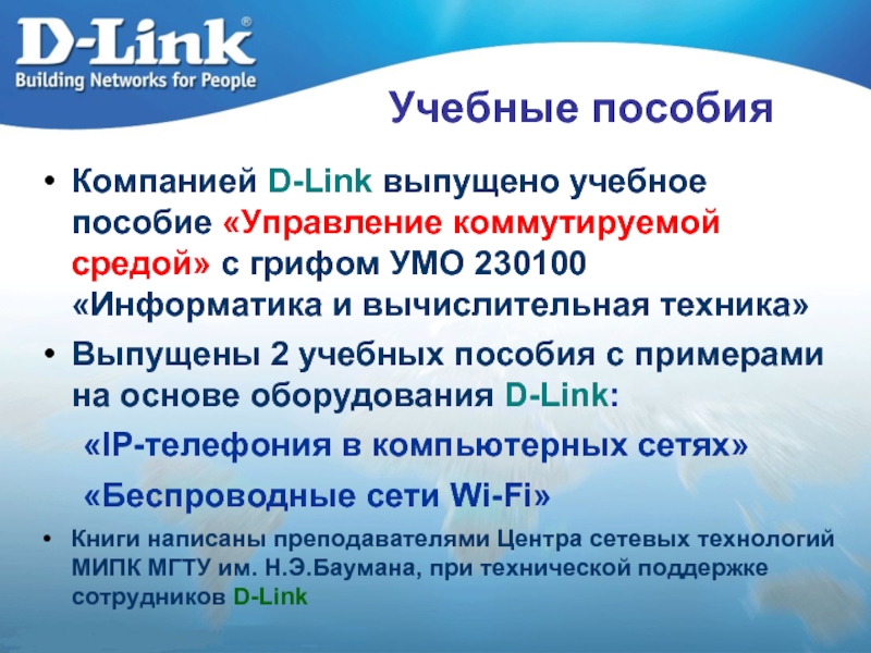 Компанией D-Link выпущено учебное пособие «Управление коммутируемой средой» с грифом