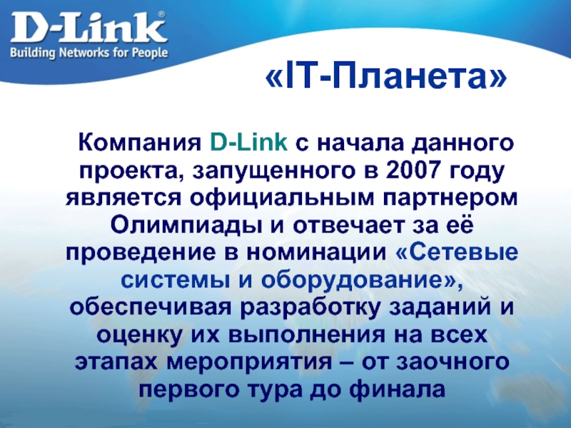 Компания D-Link с начала данного проекта, запущенного в 2007 году является