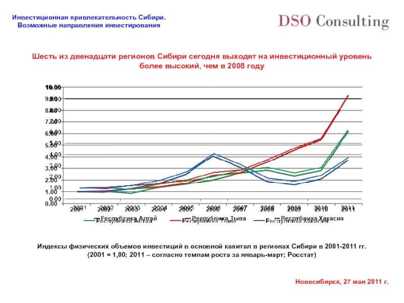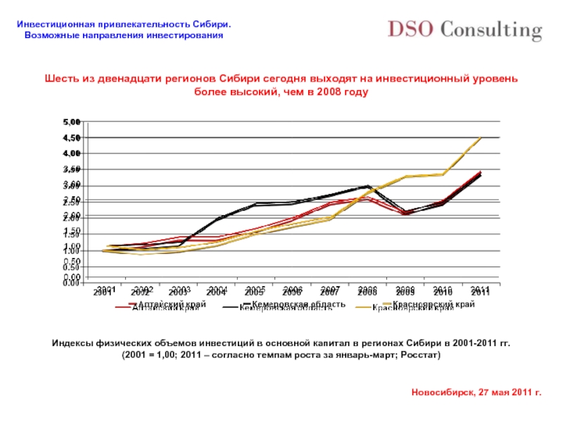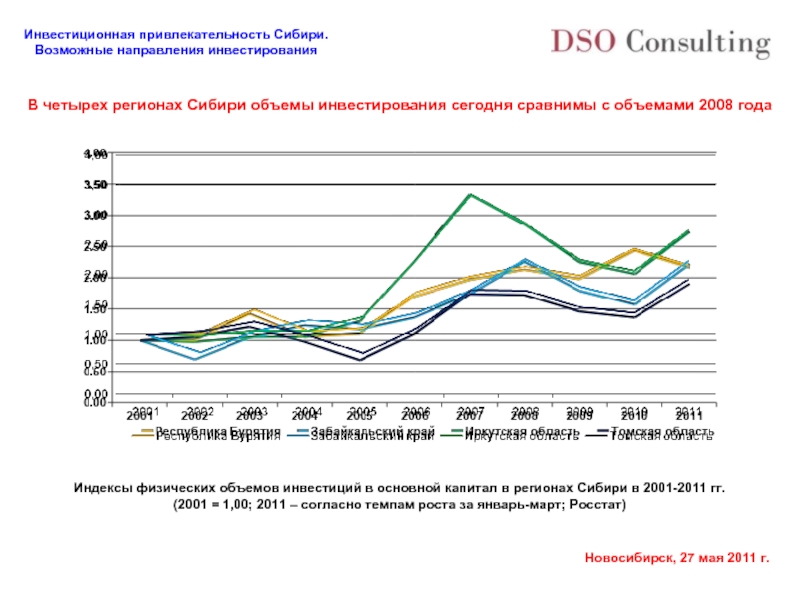 Индексы физических объемов инвестиций в основной капитал в регионах Сибири в 2001-2011 гг.