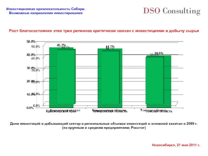 Доли инвестиций в добывающий сектор в региональных объемах инвестиций в основной капитал в 2009 г.