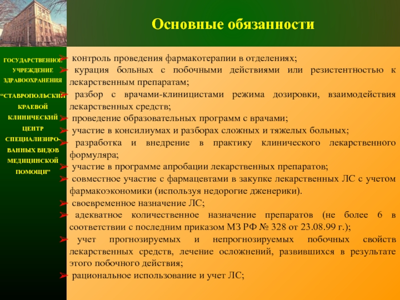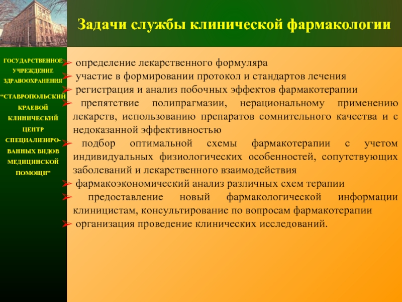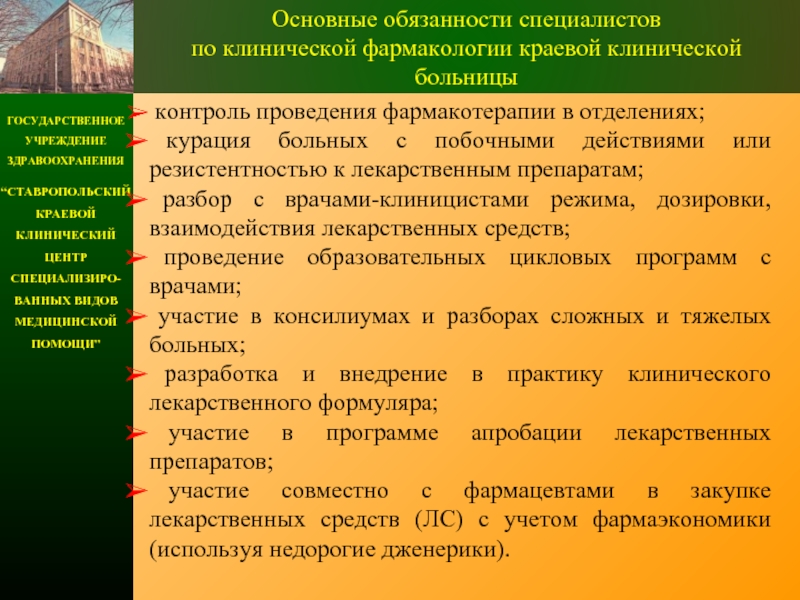 предоставление новый фармакологической информации клиницистам, консультирование по вопросам фармакотерапии