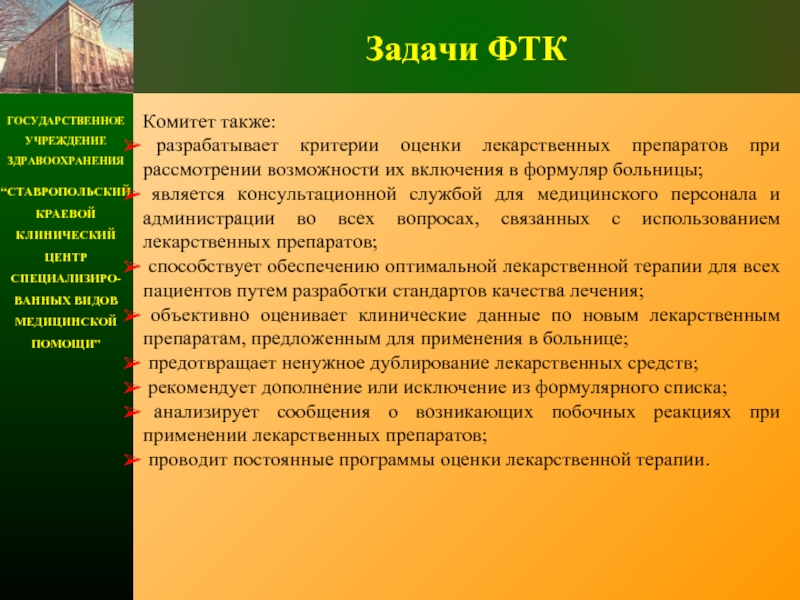 разработка и внедрение в практику клинического лекарственного формуляра;