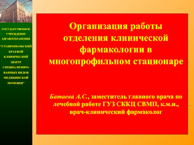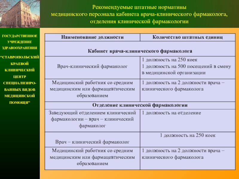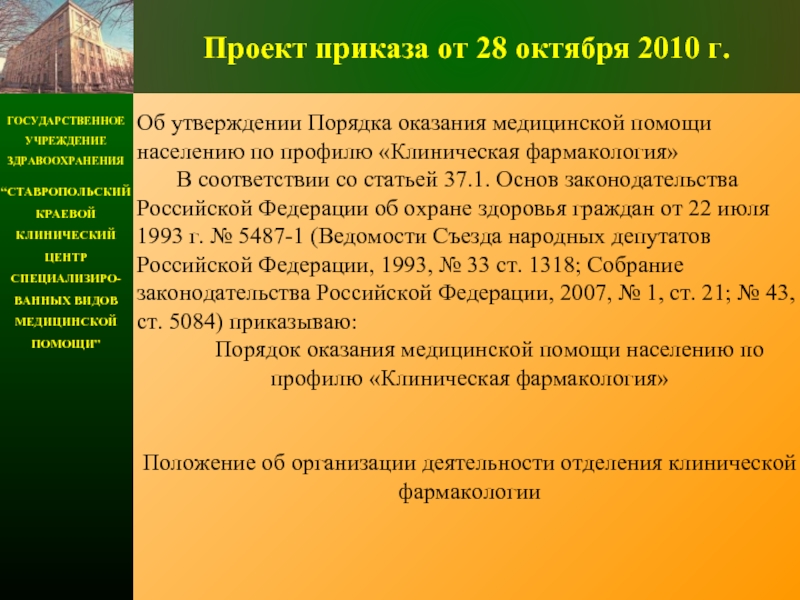 Положение об организации деятельности отделения клинической фармакологии