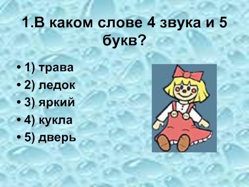 Слайд 21.В каком слове 4 звука и 5 букв?